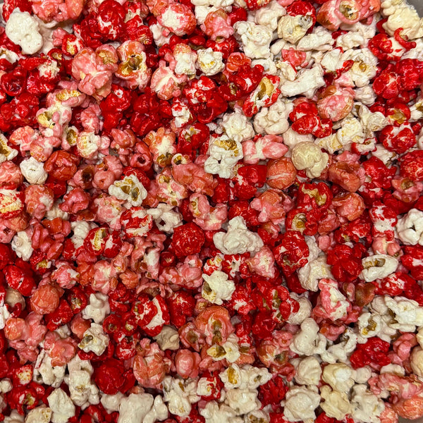 Red, white, and pink vanilla popcorn all mixed up and ready to steal your heart. Sweet, festive, and full of feel-good crunch.